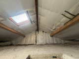 À l’étage, un dégagement mène aux combles isolés, déjà équipés d’un vélux et d’arrivées d’eau chaude et froide, offrant un potentiel d’aménagement supplémentaire ou un vaste espace de rangement. Deux chambres confortables, une salle d’eau moderne avec WC et une grande terrasse de 17 m² complètent ce niveau.